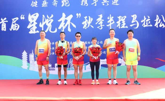 隨后,舉行隆重頒獎儀式,公司領(lǐng)導(dǎo)分別為前三名選手頒發(fā)獎牌和鮮花,全體參賽選手合影留念,星船城首屆“星悅杯”半程馬拉松比賽圓滿結(jié)束。